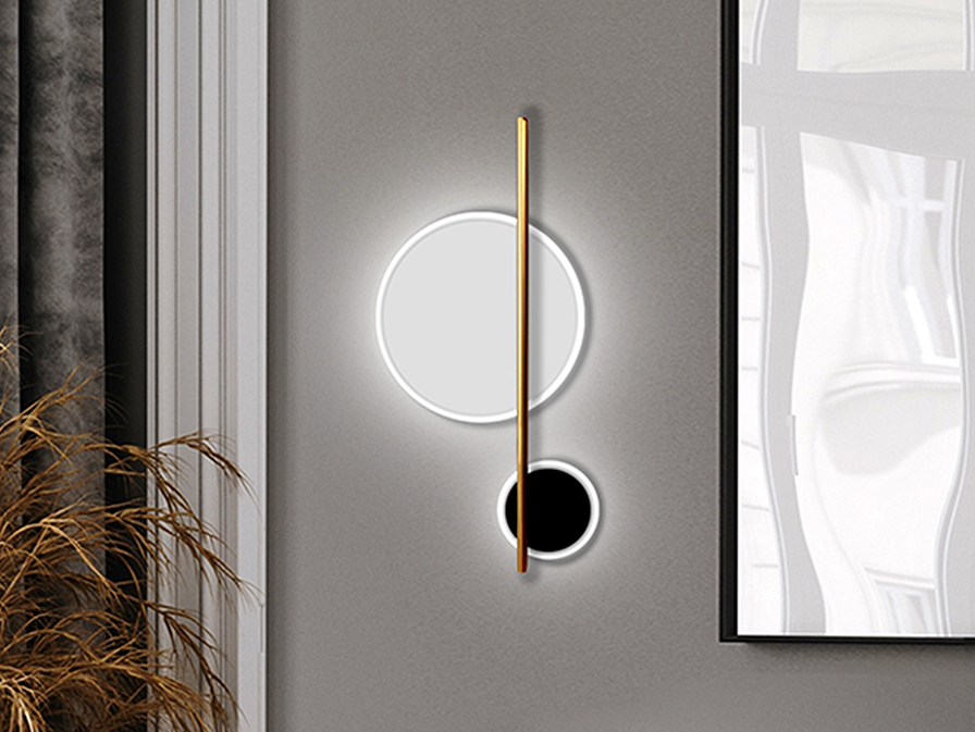 Lampa ścienna Duo utworzona z dwóch dysków wyposażonych w zintegrowane światło ledowe.